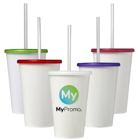 Double-wall insulated tumbler. Tumbler features a full colour wraparound design moulded to the product, making it long-lasting and durable. Supplied with a flexible silicone straw. Volume capacity is 350 ml. Made in the UK. Packed in a home-compostable bag. BPA-free. PP Plastic, Silicone Plastic.