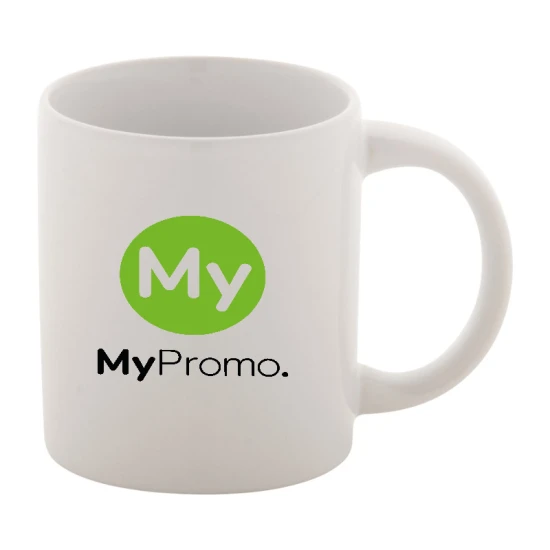 White porcelain mug, 300 ml. For a print that lasts through dishwasher washes, we suggest choosing a ceramic or sublimation print.