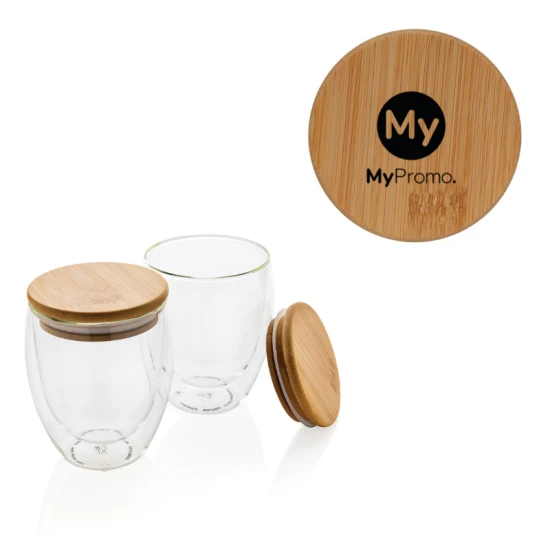 This double wall borosilicate glass set has a sleek 2 layer design which showcases all your favourite drinks! No matteer what you serve, cappuccino, tea or latte will be nice and hot while your hand stays cool. Incudes a bamboo lid. It is recommended to handwash the glass and bamboo lid. Presented in a full colour gift box. Capacity per glass 250ml. BPA free. For a print that lasts through dishwasher washes, we suggest choosing a ceramic or sublimation print.