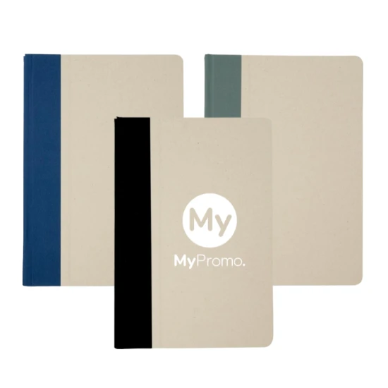 Liliana A5 hard cover notebook with rounded corners and 80 lined sheets of 90 g/m² paper. The cover is made of RPET and sugar cane plastic. Fruit paper.