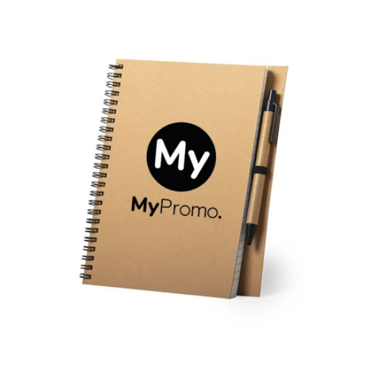 This A5 notebook is made from cardboard. It is a material with one of the least environmental impact. It is recyclable and bio-degradable. Its neutral colour allows your logo to stand out and draw attention to your company. With 80 lined pages, this notebook is perfect to assist you in your daily life. Includes a biro pen with a push-up mechanism and a recycled cardboard body.