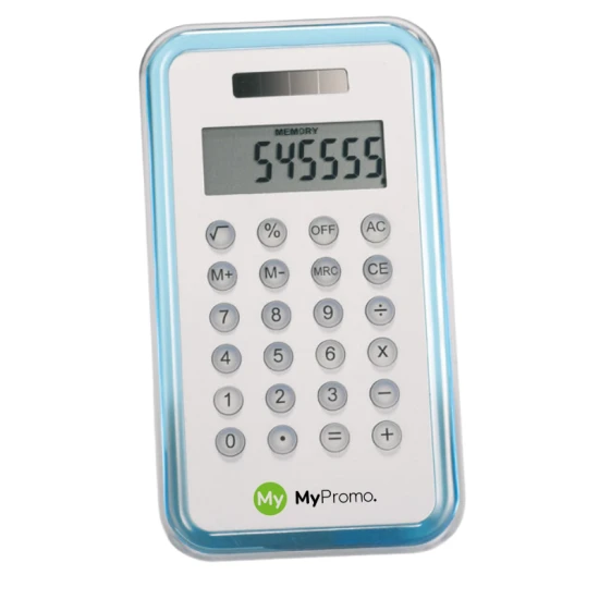 8 digit dual power calculator with aluminium front cover. 1 cell battery included.
