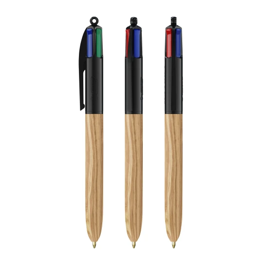 Our iconic BIC® 4 Colours ballpen now with a wood grain effect. Be impressed with the spectacular wood finish! Our iconic BIC® 4 Colours® is becoming more sustainable, now with 13% less plastic on the upper part! Between June 2023 and June 2024 bear in mind that you may receive your order line with the standard clip or the new clip containing less plastic.