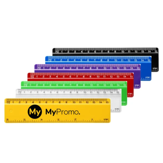 Solid plastic ruler, with markings available in both inches and centimetres. Please note, the ruler markings are printed along with artwork, plain stock rulers will not carry markings. GPPS Plastic.