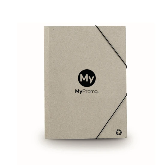 High-capacity eco-friendly folder with an elastic closure and a triple folding system. Made from flexible recycled cardboard.