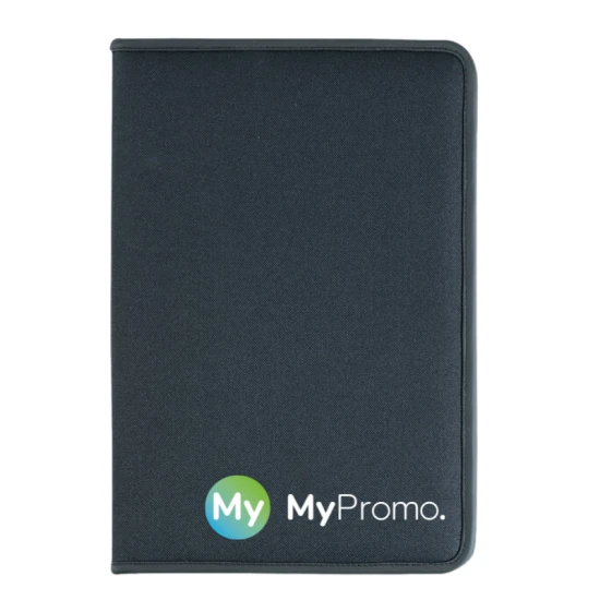 A4 conference folder. 600D polyester and 210T lining. Zipped. A4 20 lined sheets notepad. 4 compartments. Card holer.