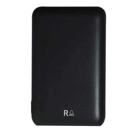 External auxiliary battery made from recycled ABS (RABS) with a capacity of 5,000 mAh. Includes dual USB output for simultaneous charging of 2 devices, Micro USB input, and Type C input/output connection. With charge status indicator. Includes RABS label.RABS is a highly recyclable plastic with great strength and a multitude of applications that make it an eco-friendly solution.The capacities shown in all our external auxiliary batteries are real, incorporating all grade A and not recycled batteries, with a lifespan of at least 500 charge cycles and according to CE regulations.Additionally, they are manufactured in accordance with RoHS standards and meet the following safety requirements:Power bank overload protection system.Complete discharge protection system that provides greater durability for the power bank.Locking system to prevent short circuits.Constant charge transfer system, according to the capacity of the destination device.5000 mAh. 2 USB Outputs. Micro USB Input. Type C Output and Input.