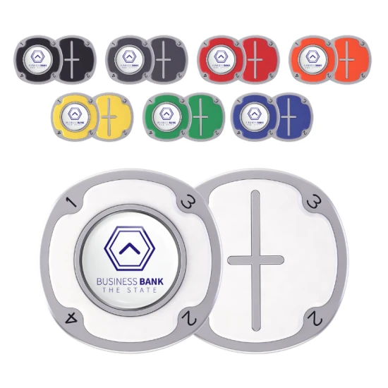 The Pitchfix Multimarker Chip is made of metal and ABS plastic. This Multimarker Chip is a multifunctional tool and offers various functions. The large ball marker features a smaller magnetic ball marker, includes a guideline for putting help, and has a coin toss function. Available in 8 different colours.