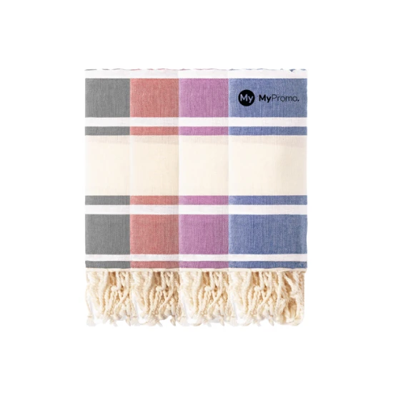 Pareo towel 2-in-1 in organic 110g/m2. Size 180 x 90 cm and available in a wide range of combined colours. Organic distinctive in label.