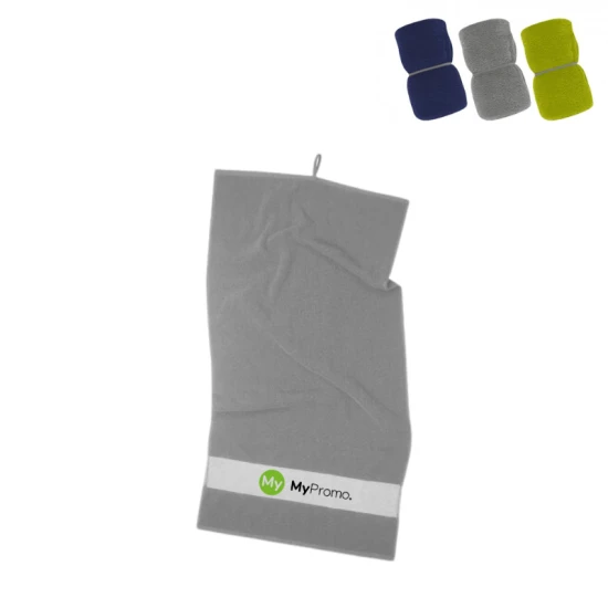 Experience the perfect blend of functionality and sustainability with our European-made sports towel. Expertly crafted using a Jacquard weave, this towel features two looped sides that provide excellent absorbency and a soft touch, ideal for any sports or fitness activity. Made from 70% recycled cotton and 30% SEAQUAL polyester, it weighs a substantial 400gr/m², ensuring both durability and eco-friendliness. The convenient elastic loop makes it easy to hang and dry. Available in stylish shades of grey, blue, and green, and measuring 50 x 100 cm, this towel combines practicality with modern aesthetics. Elevate your workout routine while supporting environmentally responsible practices with our premium sports towel.