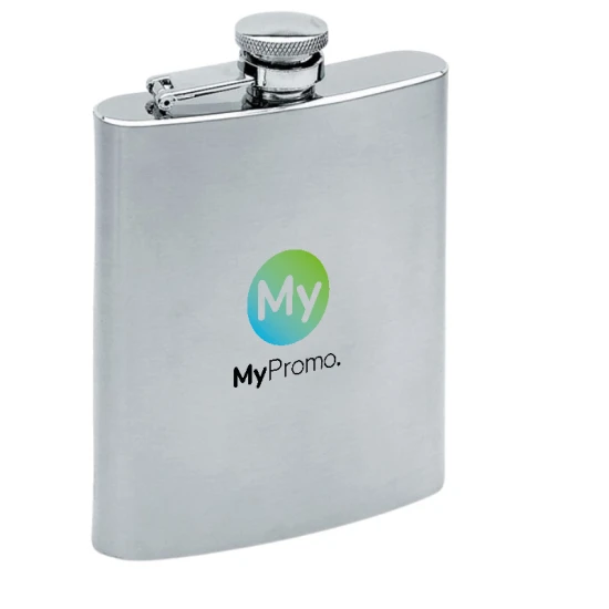 Slim hip flask. Satin finish. Single layer. 175 ml capacity. The full-colour print is only a label.
