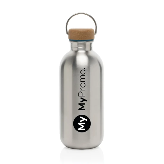 A lightweight and compact 600ml high quality stainless steel bottle with a sustainably sourced PP lid. The stainless steel and PP lid feature a convenient carry loop. Handwash only
