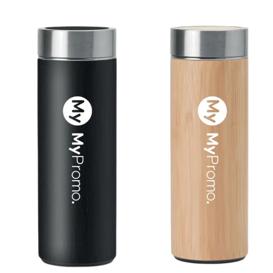 Double wall stainless steel insulating vacuum flask with bamboo cover and additional tea infuser. Capacity: 400 ml. Bamboo is a natural product, there may be slight variations in colour and size per item, which can affect the final decoration outcome. Bamboo is a natural product, there may be slight variations in colour and size per item, which can affect the final decoration outcome.