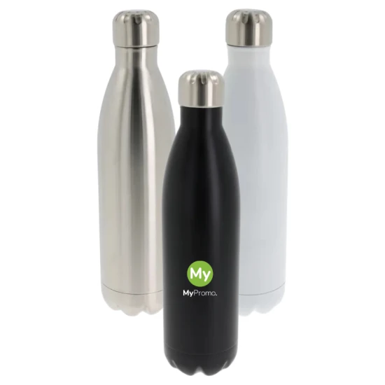 Double walled vacuum insulated drinking bottle with a capacity of 0,75L. The 100% leak-proof bottle is packed in a gift box. The bottle keeps the drink inside at the right temperature for longer, thanks to the vacuum inbetween the walls. Drinks will stay warm for up to 12 hours and/or cold up to 24 hours.