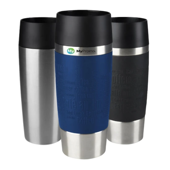 The Tefal Travel Mug is a stainless steel, leakproof travel mug and can personalised with a Max Print. This travel mug is certified BPA free. This mug has a slim design that fit most car cup-holders, with a soft-touch silicone sleeve for a secure grip. It has a cold retention of 12 hours and heat retention of 6 hours. Volume is 0.36L. For a print that lasts through dishwasher washes, we suggest choosing a ceramic or sublimation print.
