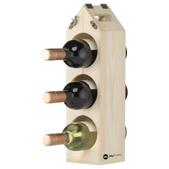 A wine box and a wine rack in one. This is a wooden gift box for a bottle of wine that transforms into a wine storage rack. The Box not only helps to distinguish your bottle from other host and hostess gifts, but can also be transformed from a carrier into a wooden wine rack by simply turning a few hinges. It can be assembled in different ways to store three, six or even 12 bottles of wine. This wine gift box is made of FSC 100% certified wood with a new second life!