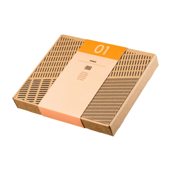 Wine tasting in a craft giftbox with 5 glass 100 ML tubes with wines from Domaine de Rombeau. The tasting consists of a rose wine, a red wine and a white wine