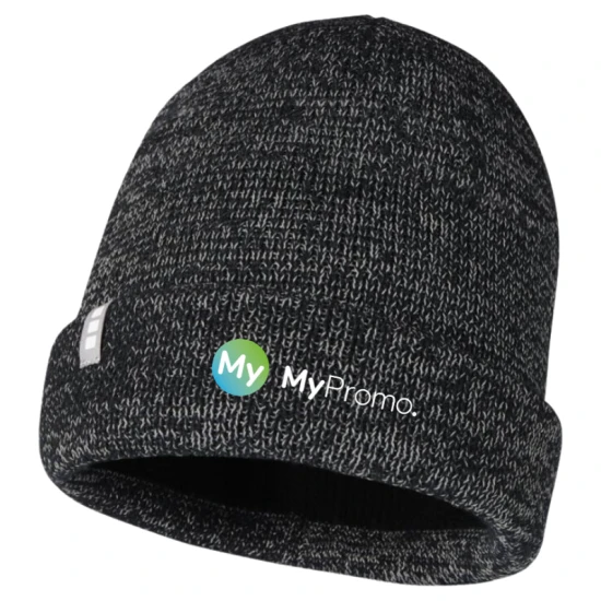 Single layer beanie with double folded edge. Reflective details. Branded loop label. 100% Acrylic, 9 gauge.