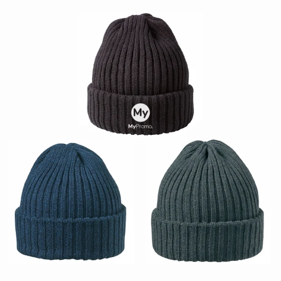 Chunky knitted hat with turn-up, made of 100% acrylic, in ribbed knit. One size fits all.